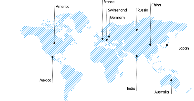 The United States, Germany,Japan,Switzerland, Australia, Russia, Mexico, France, India, etc..