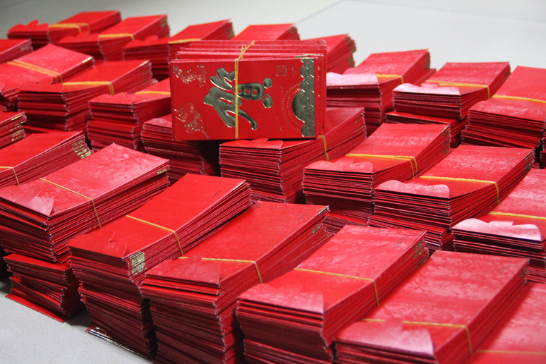 在厂区、宿舍插彩旗、拉条幅、贴对联、挂灯笼,红彤彤的年味儿盈满厂区。在除夕和大年初一燃放鞭炮,响彻天的鞭炮声迎来吉祥年。