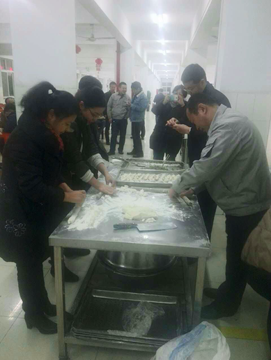 除夕当晚,大食堂直播2016年央视春节联欢晚会,并准备了饺子食材,集团总经理陈彦广、副总经理侯乃仙带着慰问的领导集体为员工包起了饺子,并送给每一位现场员工,员工们边看着春晚边吃着热气腾腾的饺子,内心暖融融的。员工们说,这饺子味儿是独属于兴龙家人的,美味十足,虽然没有回家过年,但是和兴龙家人们一起过了一个难忘的春节。
