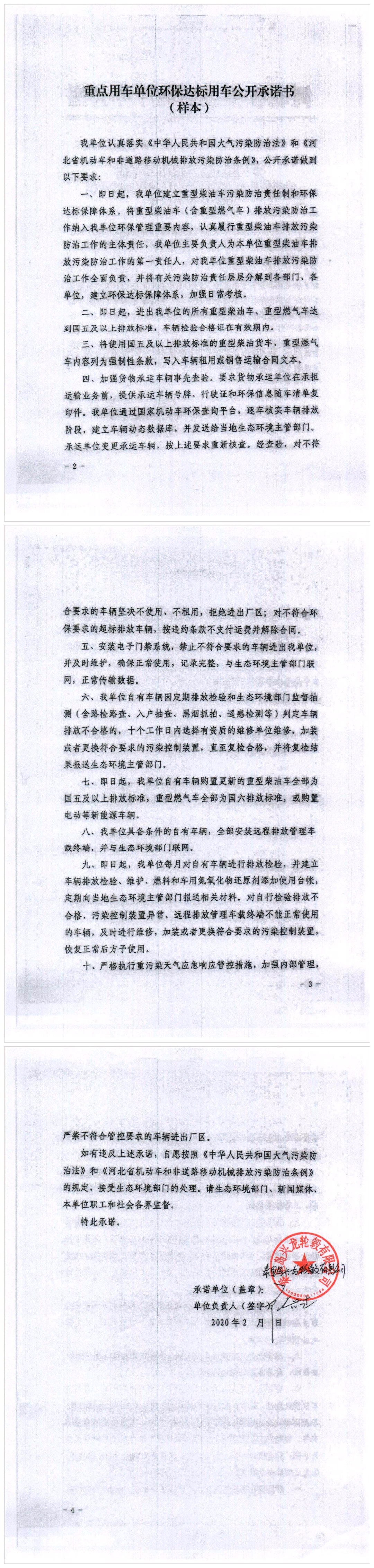 秦皇岛兴龙轮毂有限公司重点用车单位环保达标用车公开承诺书