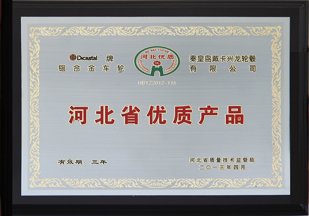 · “戴卡兴龙”牌铝合金车轮荣获河北省优质产品。