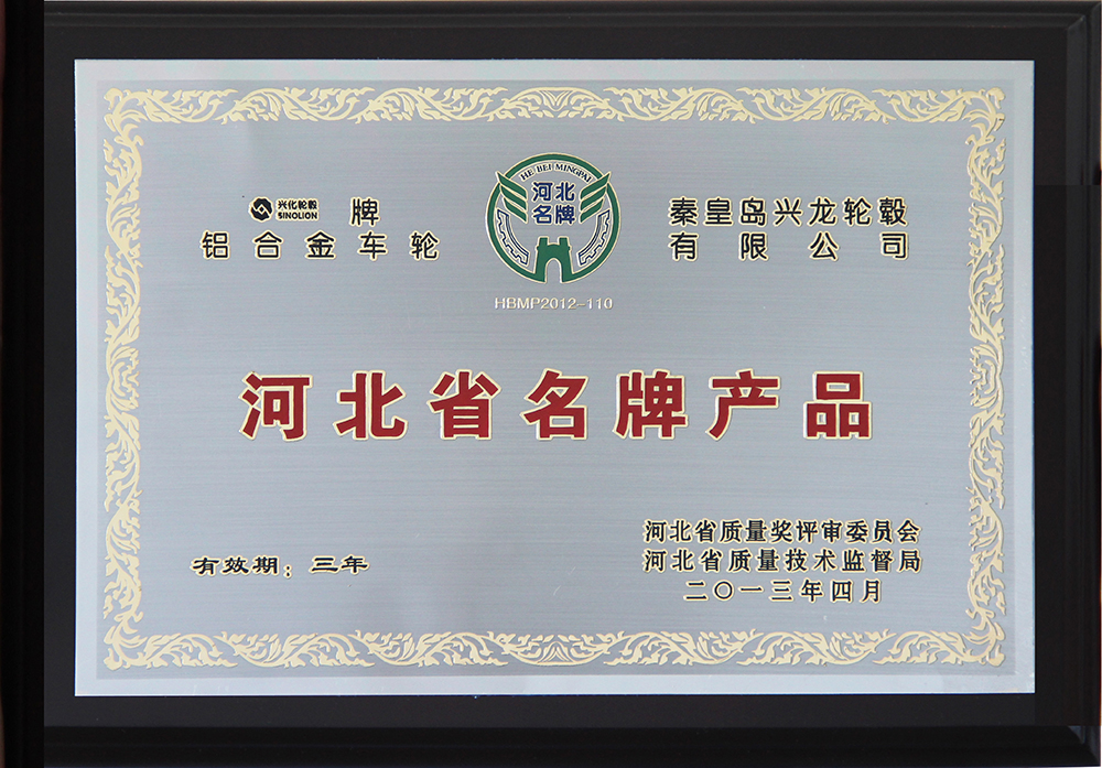 · “兴龙轮毂”牌铝合金车轮荣获河北省名牌产品。